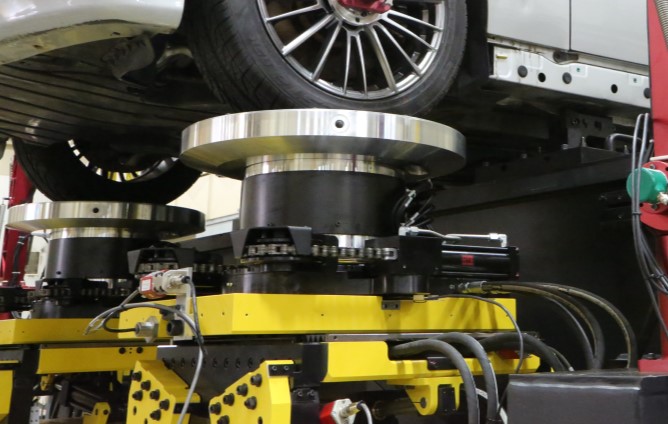 新的转向输入设置采用线性到旋转的设计,包括两个线性驱动器和一个环绕K&C系统力传感器的链传动装置,在汽车轮胎接触点或转轴上传递精确的旋转转向运动。提升的性能包括: